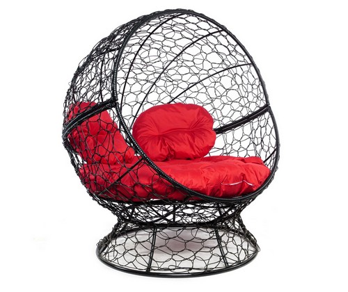 Кресло Апельсин с ротангом (черное, красная подушка)