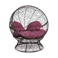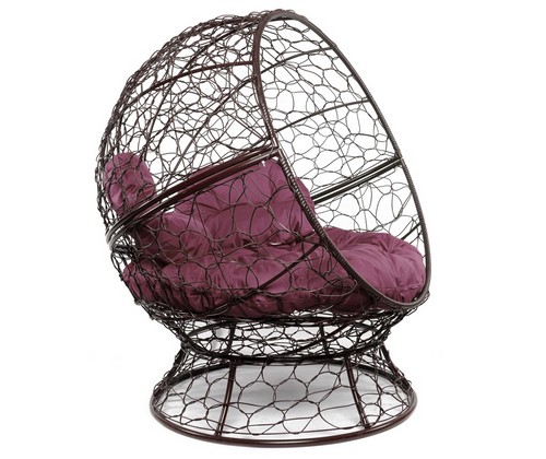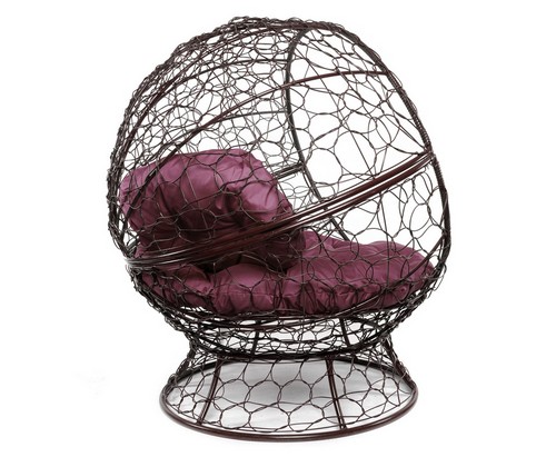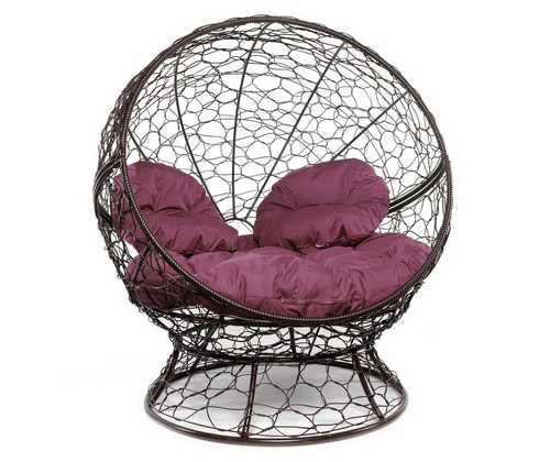 Кресло Апельсин с ротангом (коричневое, бордовая подушка)
