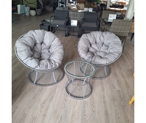 Кресло для отдыха Папасан Элис серый, подушка серая Tesla smoke