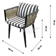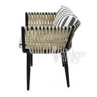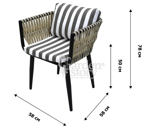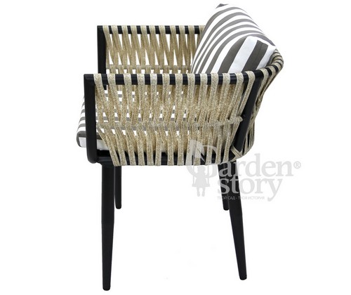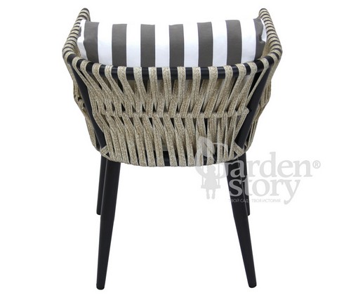 Кресло к набору Монте-Карло (черный, ротанг жемчуг, ткань полоска)
