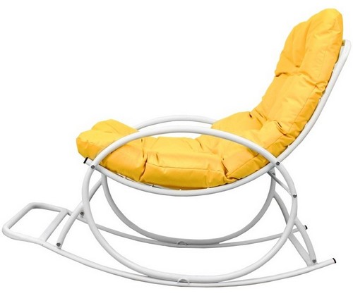 Кресло-качалка белая с желтой подушкой