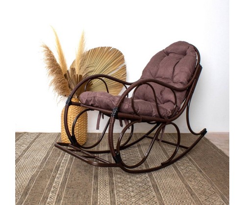 Кресло-качалка Элит коричневое, подушка Какао