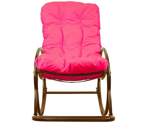 Кресло-качалка коричневая с розовой подушкой