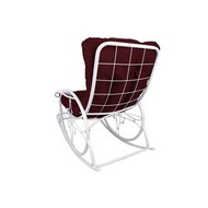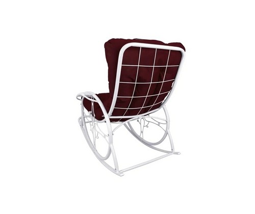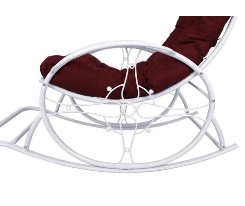 Кресло-качалка Люкс белое, бордовая подушка