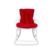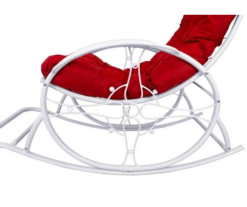 Кресло-качалка Люкс белое, красная подушка