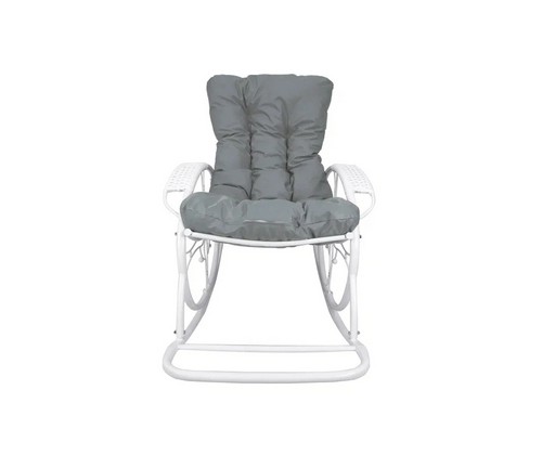 Цветовое исполнение: каркас - белый, плетение подлокотников - белое, подушка - серая.