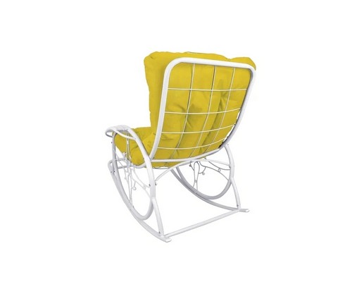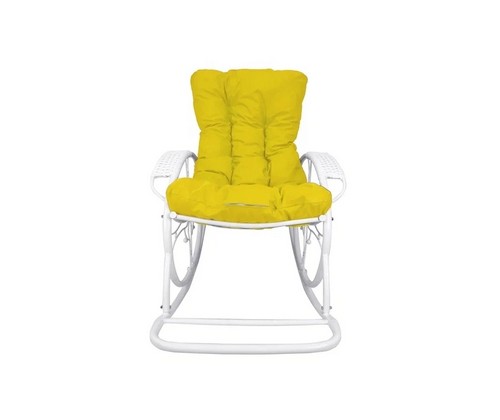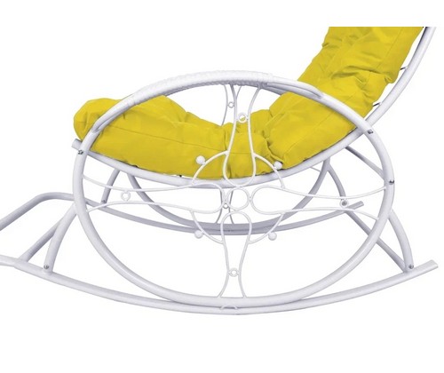 Кресло-качалка Люкс белое, желтая подушка