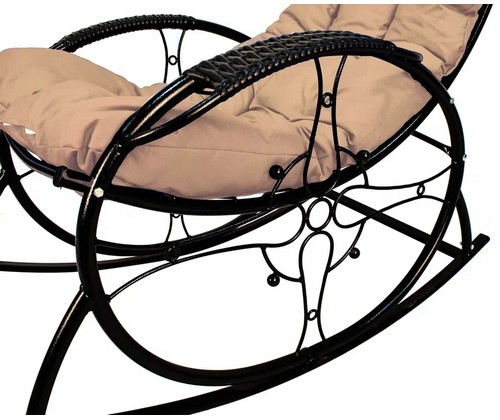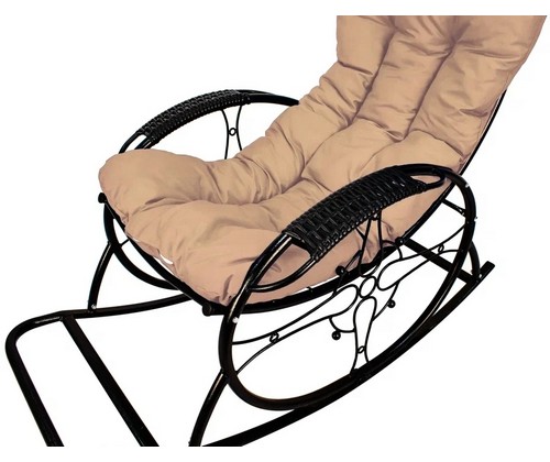 Кресло-качалка Люкс черное, бежевая подушка