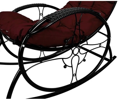 Цветовое исполнение: каркас - черный, плетение подлокотников - черное, подушка - бордовая.
