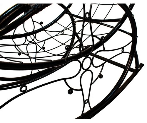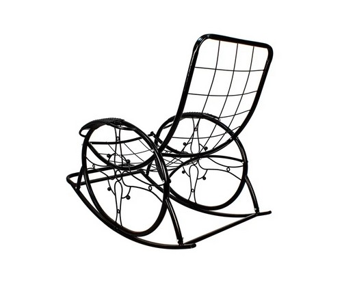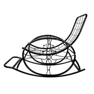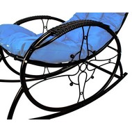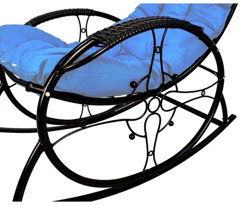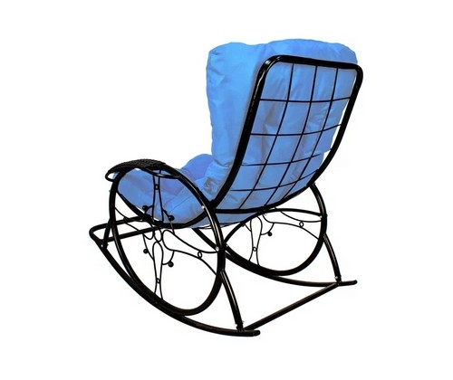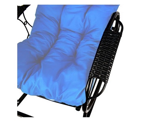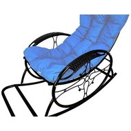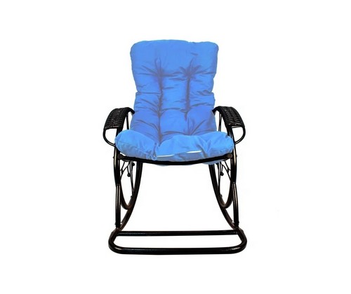 Кресло-качалка Люкс черное, голубая подушка