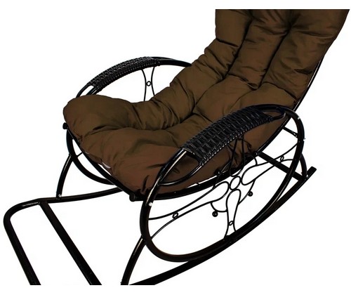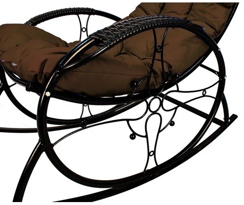 Цветовое исполнение: каркас - черный, плетение подлокотников - черное, подушка - коричневая.