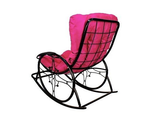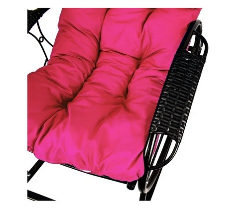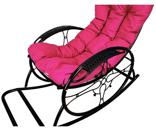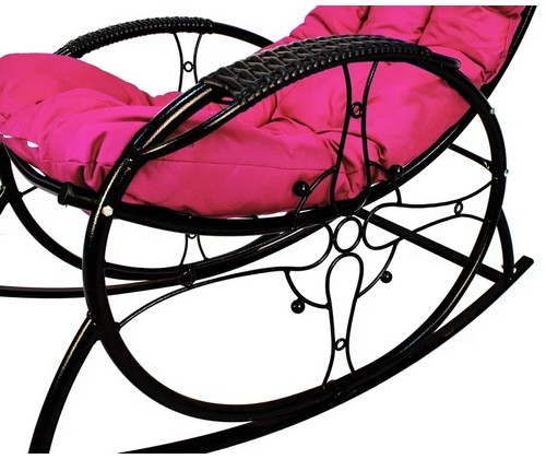 Цветовое исполнение: каркас - черный, плетение подлокотников - черное, подушка - розовая.