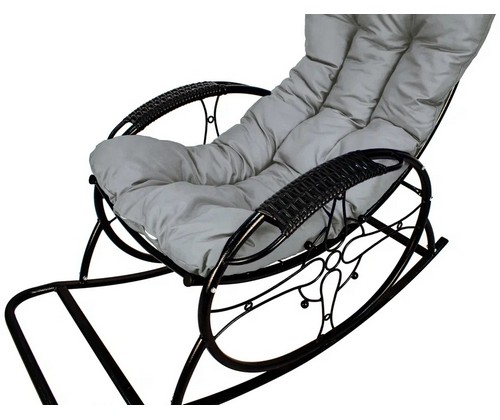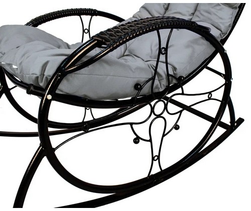 Кресло-качалка Люкс черное, серая подушка