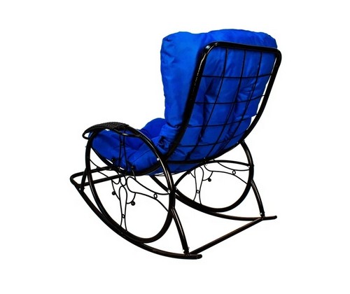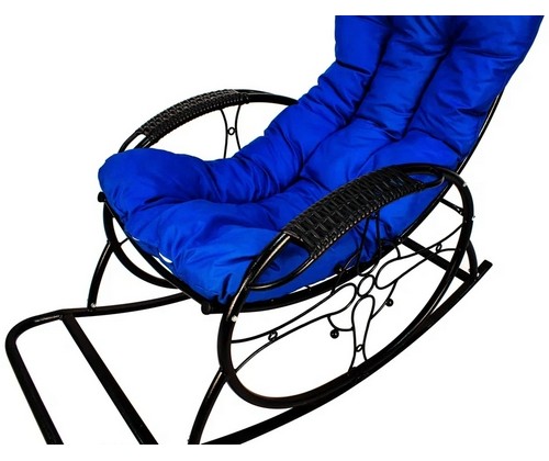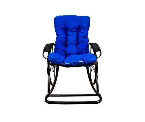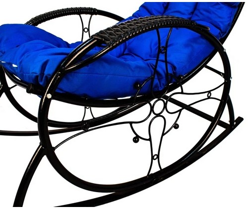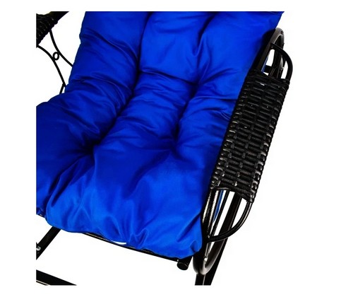 Цветовое исполнение: каркас - черный, плетение подлокотников - черное, подушка - синяя.
