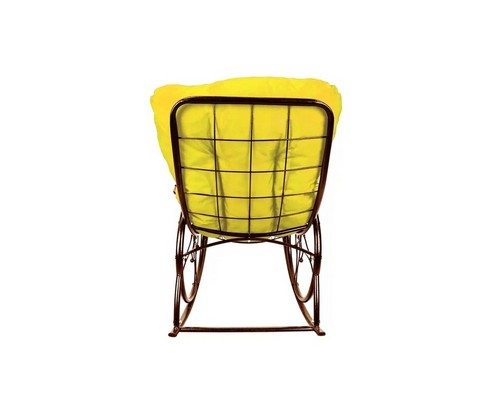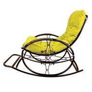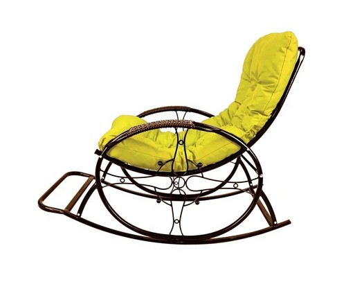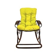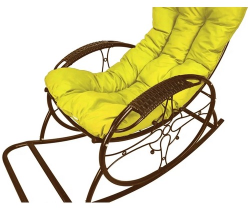 Цветовое исполнение: каркас - коричневый, плетение подлокотников - коричневое, подушка - желтая.