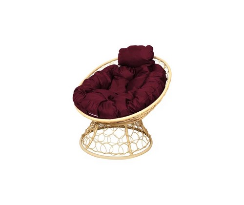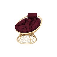 Кресло Папасан Мини с ротангом (бежевое с бордовой подушкой)