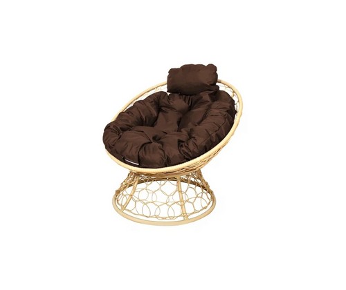 Кресло Папасан Мини с ротангом (бежевое с коричневой подушкой)