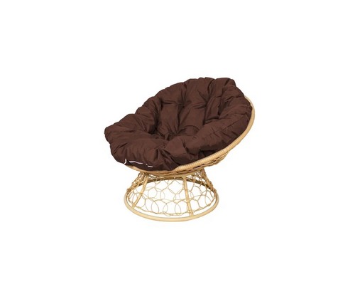 Кресло Папасан с ротангом (бежевое с коричневой подушкой)