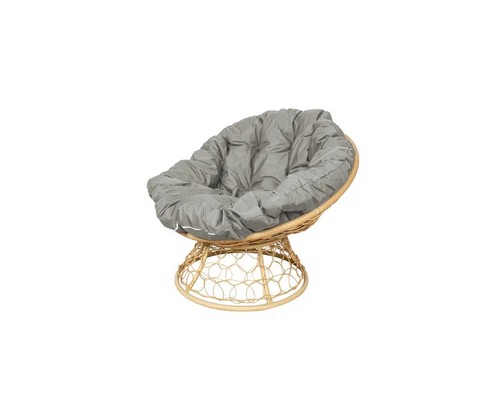 Кресло Папасан с ротангом (бежевое с серой подушкой)