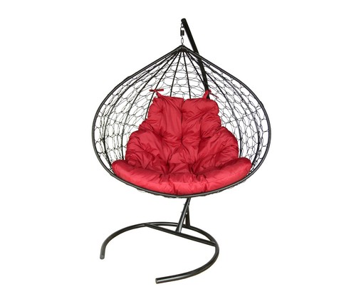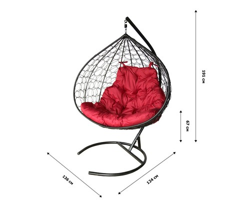 Кресло подвесное Фиджи Лайт Х двойное (стойка, основание, корзина черный цвет, подушка красная)
