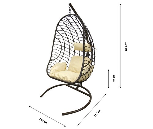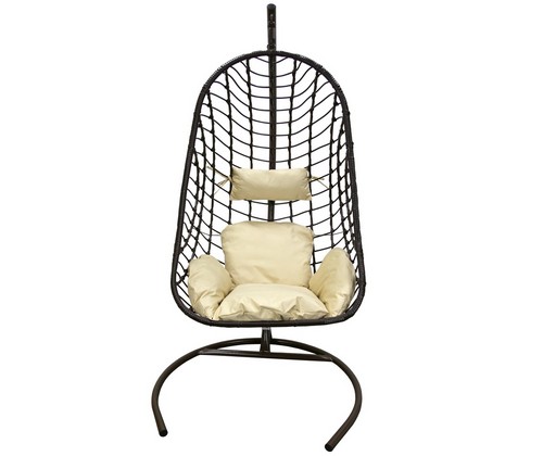 Кресло подвесное Тренто ротанг (коричневое, подушка бежевая)