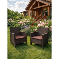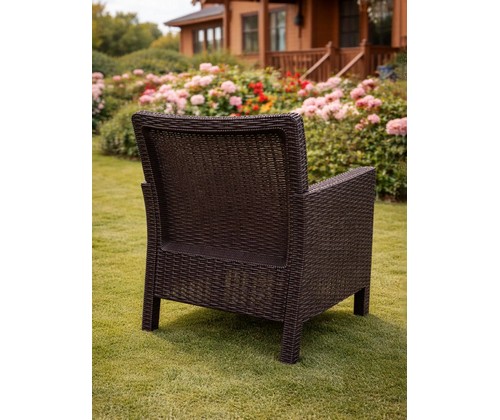 Кресло садовое под ротанг СадКо (темно-коричневый с коричневой подушкой)