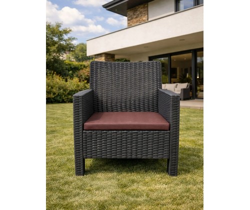 Кресло садовое под ротанг СадКо (темно-серый с коричневой подушкой)