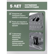 Модель с удобными ручками и системой фиксации подходит для компостеров диаметром от 110 до 130 см, обеспечивая герметичность и комфортное использование.
