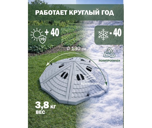 Крышка сохраняет свои свойства при температурах от -40°C до +40°C, что позволяет использовать ее в любом климате - от суровой зимы до жаркого лета.