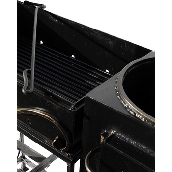 Дополнительная информация: оборудован крышей, можно жарить шашлык в дождь. Долгий срок службы обеспечивает решетка на дне топки и ребра жесткости, встроенные по периметру мангала. Мангал изготовлен из качественной стали марки СТ-3. В стенках топки имеются отверстия, которые обеспечивают естественный поддув. Толщина стенок топки 3 мм, дно 3 мм. Топка съемная, её просто чистить и перемещать, при выхода из строя легко заказать новую.