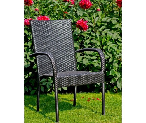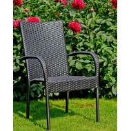 Стол - каркас из алюминия, столешница поливуд. Кресло - каркас из металла, плетение искусственный ротанг.