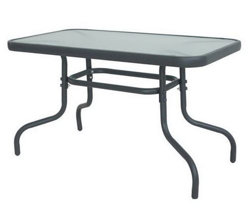 Стол - каркас из металла, столешница стекло. Кресло - каркас из металла, сиденье текстилен.
