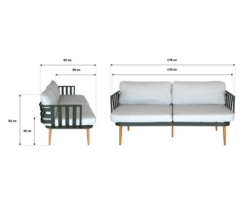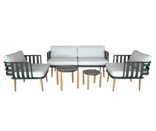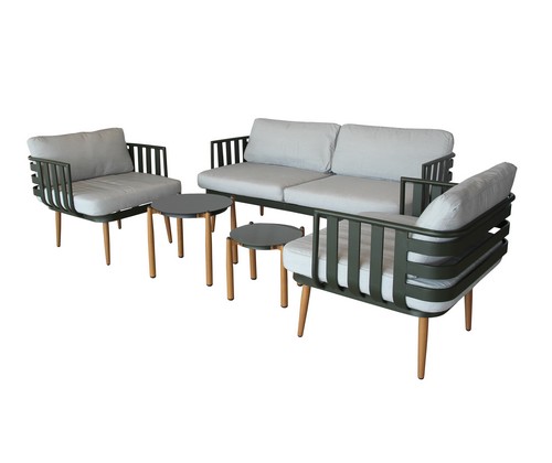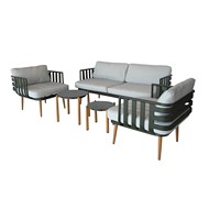 Набор мебели Эшланд серый, салатовый, бежевый (2 стола, 2 кресла, диван, подушки бежевые)