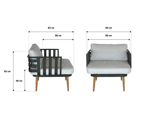 Размеры: d50х35 см (стол 1) d40х43 (стол 2) 83x80x68 см (кресло) 175x80x68 см (диван)