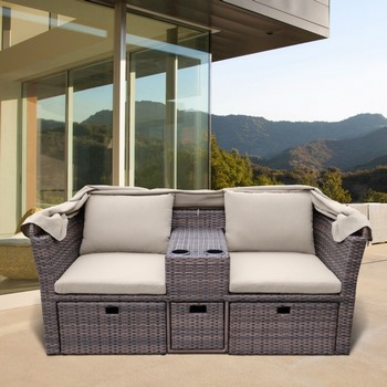Диван-шезлонг устойчив к осадкам, длительному нагреванию солнцем и смене температурного режима.