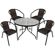 Материал изделия: каркас - металл, обмотка - искусственный ротанг, столешница - закаленное стекло.