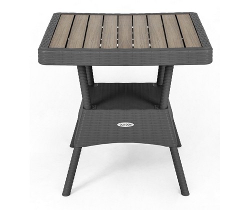 Материалы: полипропилен с добавлением стекловолокна (каркас), пластик (поверхность), террасная доска (столешница).