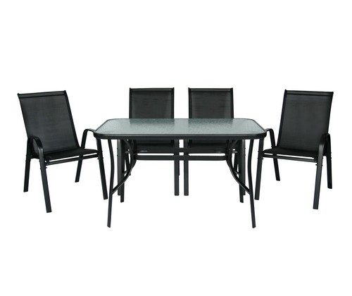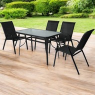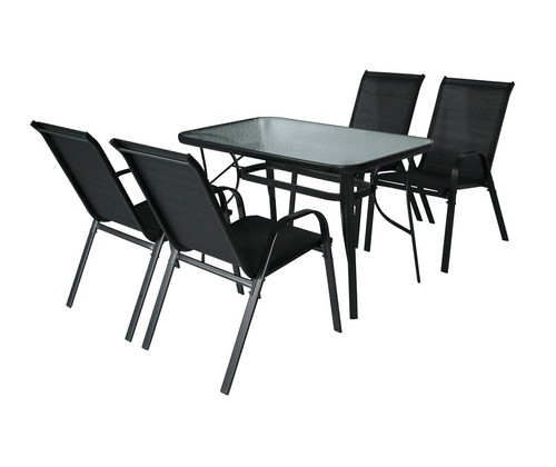 Набор мебели Сан-Ремо (4 кресла, стол 120х70см) каркас черный, сиденья черные на стальном каркасе.