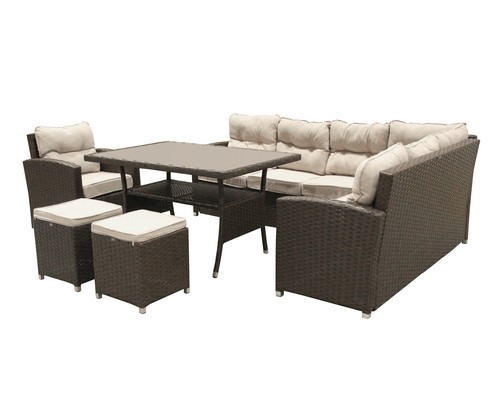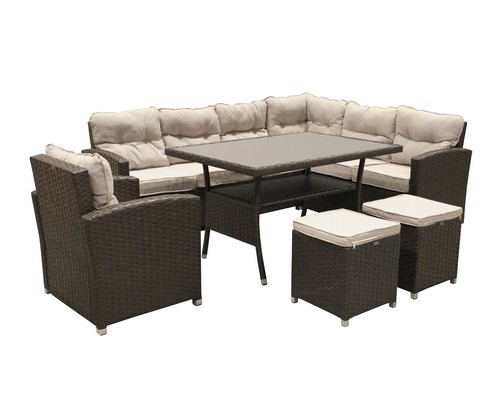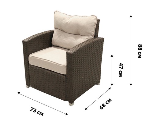 Набор мебели Версаль Премиум искусственный ротанг коричневый, каркас черный, подушки бежевые на прочном стальном каркасе толщиной 1 мм.