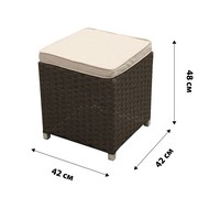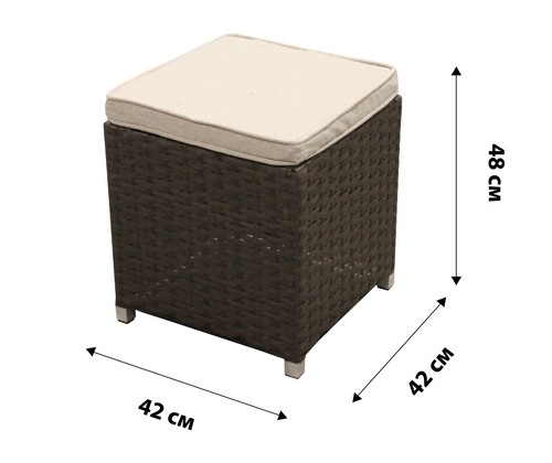 Размеры: 42х42х48 см (пуф) 68х73х88 см (кресло) 90х130х77 см (стол со стеклом) 68х173х88 см (диван 2-х местный) 68х187х88 см (диван 3-х местный)