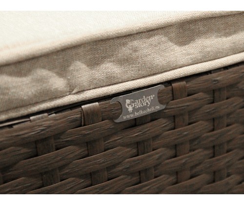 Материал изделия: сталь (каркас) ротанг искусственный, стекло (поверхность) аэропух (наполнитель мягкого элемента верх) струттофайбер (наполнитель мягкого элемента низ) рогожка (чехол мягкого элемента).