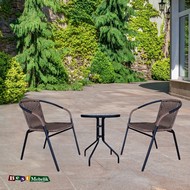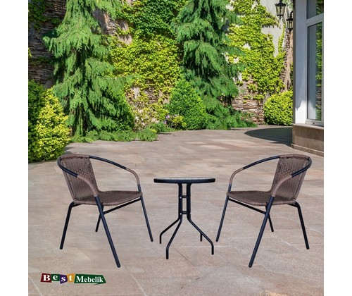 Материалы:каркас - метал, плетение - искусственный ротанг, столешница - закалённое стекло.