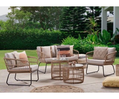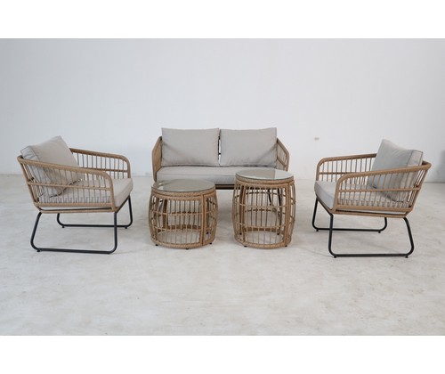 Размеры: кресло 71х69х71 см, диван 71х123х71 см, стол 1 D55х43 см, стол 2 D50х53 см.