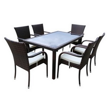 В комплект входит: стол прямоугольный - 1 шт, кресло с подушкой - 6 шт.