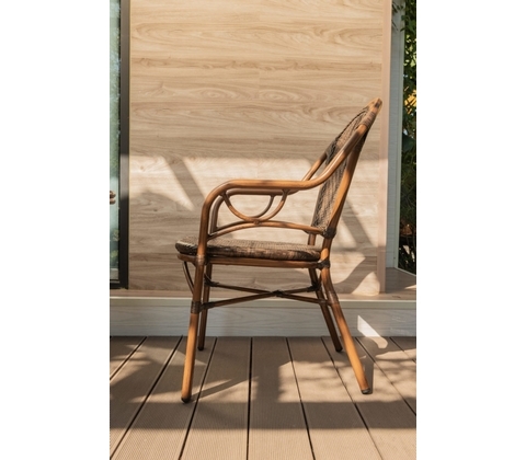 Цветовое исполнение: алюминий - бронза, ротанг - коричневый, каркас кресла - красный бамбук.