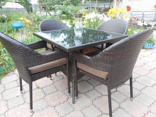 Комплект мебели Аврора состоит из пяти предметов - стол квадратный и четыре кресла.