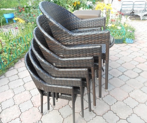 Прочный каркас с порошковым покрытием и ручное плетение из искусственного ротанга.