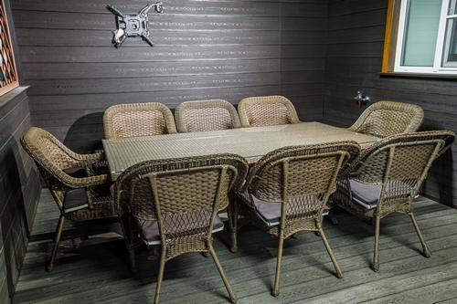 Обеденная группа из искусственного ротанга Кросс Мэдисон на 8 персон с подушками на сиденье