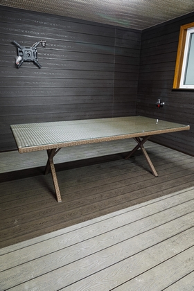 Размеры стола: длина - 220 см, ширина - 109 см, высота - 22 см.