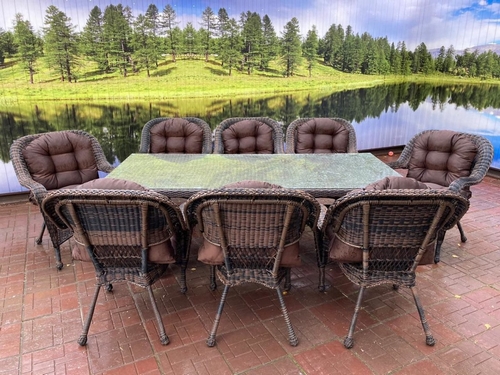 Обеденная группа из искусственного ротанга Кросс Мэдисон New на 8 персон Премиум Коричневый